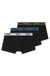 A set of three everyday BOSS Menswear trunks in soft, stretch cotton for comfort. Regular-rise waistband, featuring a signature stripe and repeat logo design.